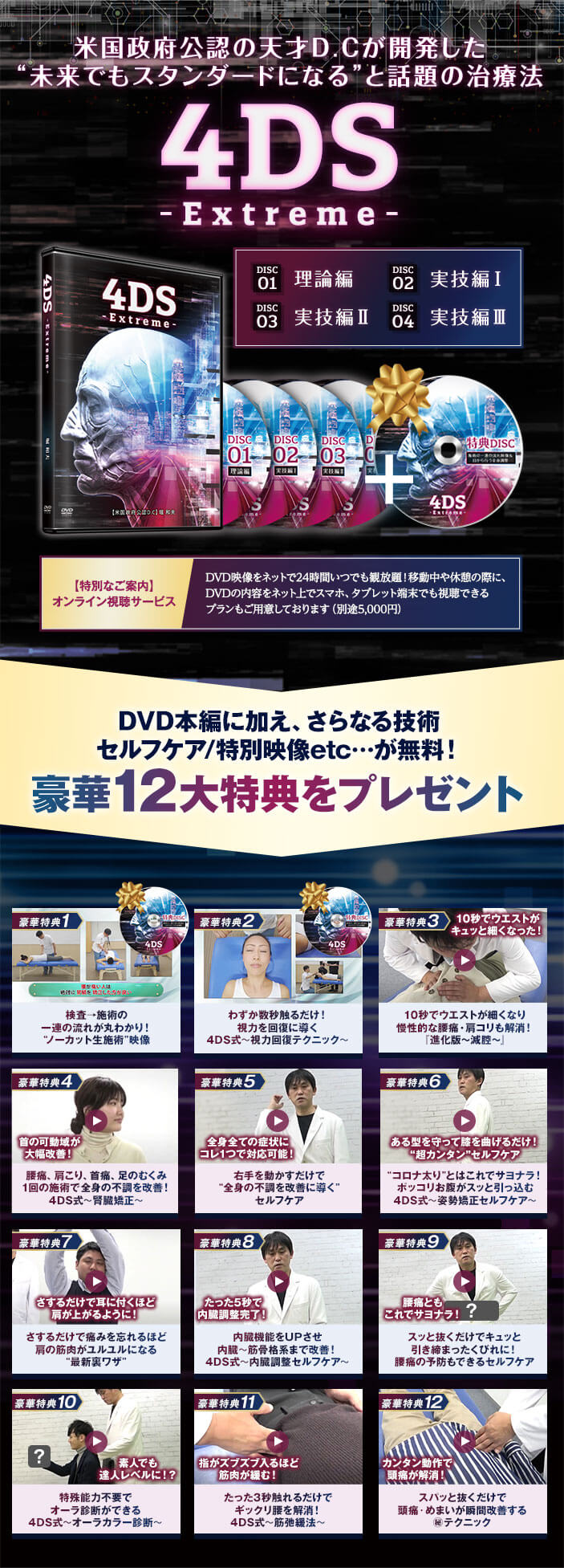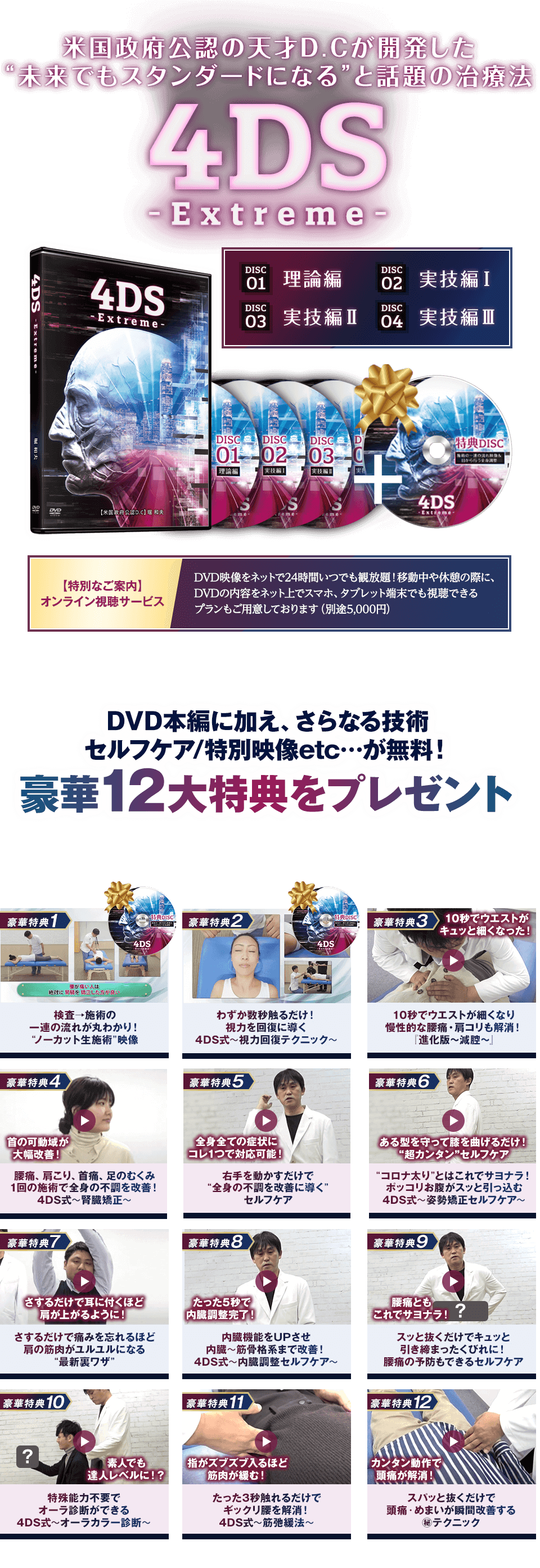 このように遠隔初挑戦の先生でも、年単位で苦しんでいる症状を魔法のように治せてしまうのが、今回お届けしている「4DS-Extreme-」です。
