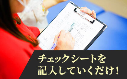 チェックシートをもとに、患者さんの症状を把握、分析。病気や痛みの原因はなにか、仮説を立てて、検査を行っていくので、治療家としての見立ての技術の向上が目指せます!