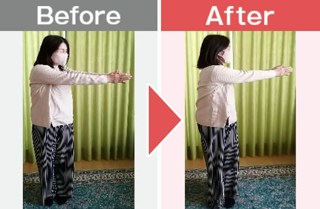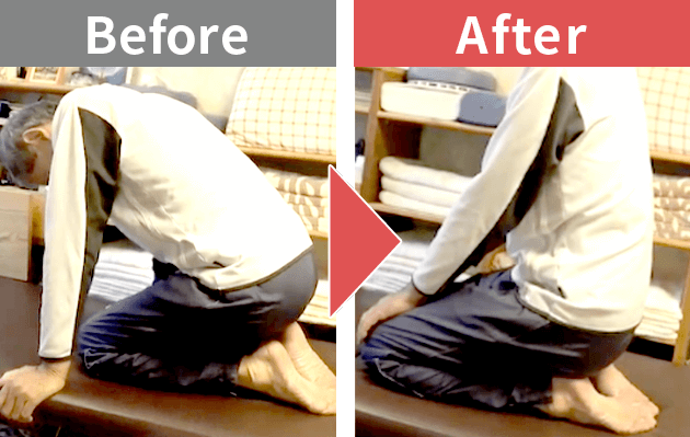 お客様からは「腰・脚が楽になり、前かがみの姿勢も改善した!」と喜んでいただけました。