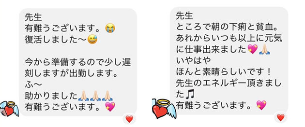 施術未経験の私でこんなにも重症な方を治せるのか不安でしたが、ソーラーヒーリングを試すと1回で全ての症状に対して改善することが出来ました!