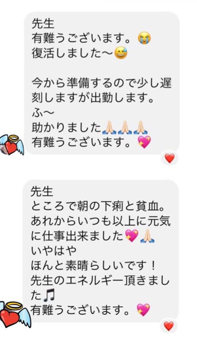 朝のメールで、「腹痛と貧血で動けないので遠隔施術をしてもらえませんか?」と施術依頼を受けました。