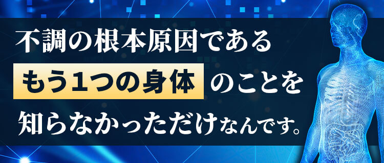 このもう1つの身体を調整することで、筋骨格から内分泌系まで人体のすべてを調整することができるので、どこに行っても改善しなかった痛み/不調ほど改善していくのです。