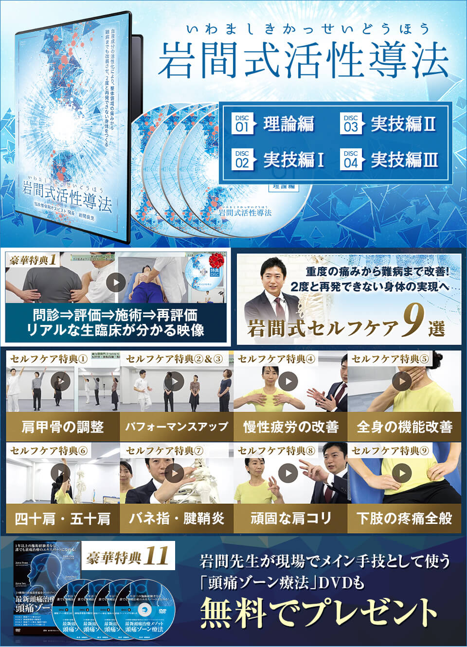 | 特典⑪ 岩間先生が現場でメイン手技として使う「頭痛ゾーン療法」DVD |