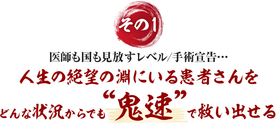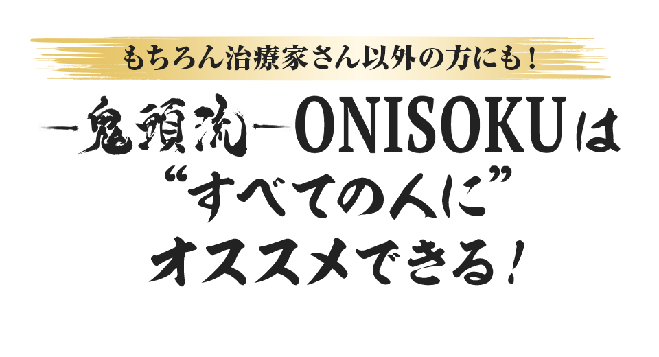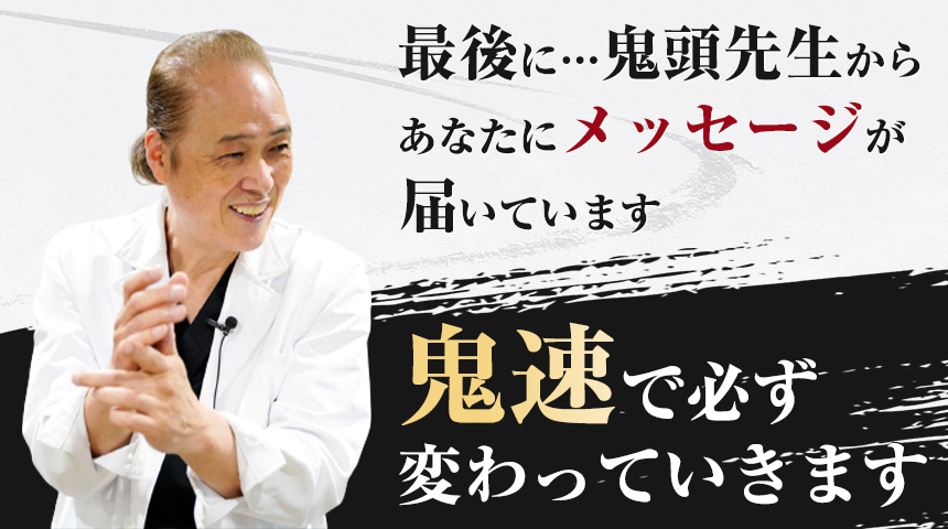 今回ご紹介する治療法「鬼頭流-ONISOKU-」により症状が快方に向かった元患者さん、そして習得した治療家さん…携わった方々は、みな口を揃えて「鬼速」と言います。