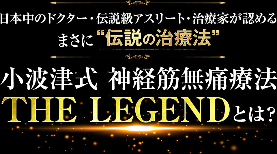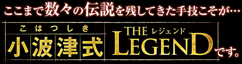 ここまで数々のあり得ない事例、まさに伝説をご紹介してきましたが、この伝説を引き起こしたのが「小波津式 THE LEGEND」です。圧倒的な「治療効果・持続性・症例・実績・信頼性・人気」を兼ね備えた、まさに伝説の手技。1つでもあり得ないような伝説を、本当に数多く残した手技です。