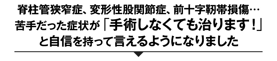 治せないことをずっと悩んでいました。でもこの手技を知った今やったら、病院をどんだけ回っても手術しか無いと言われ「こんなんなったらもう無理やな…」って諦めてたほどの症状も、確実に改善させる自信があります。