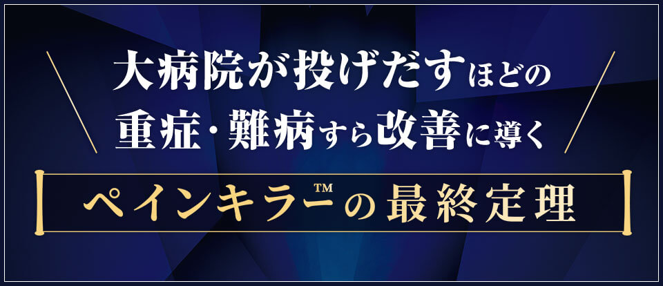 あなたがこのペインキラー(不調消失)の最終定理を手にするということは、公式化された“天才領域”に足を踏み入れ、これまで〈ゴッドハンド〉と呼ばれる有名治療家でしか手を出せなかった疾患ですらも改善に導けるようになることを意味します。