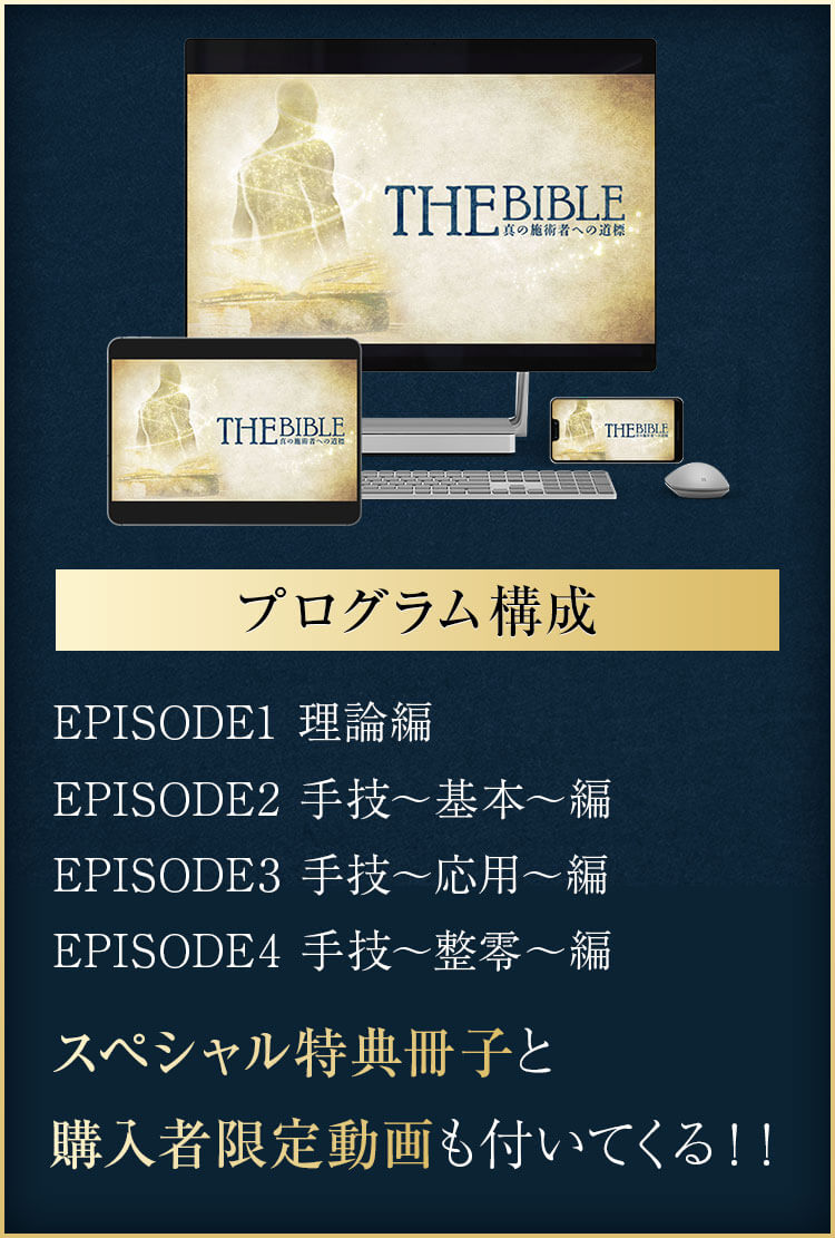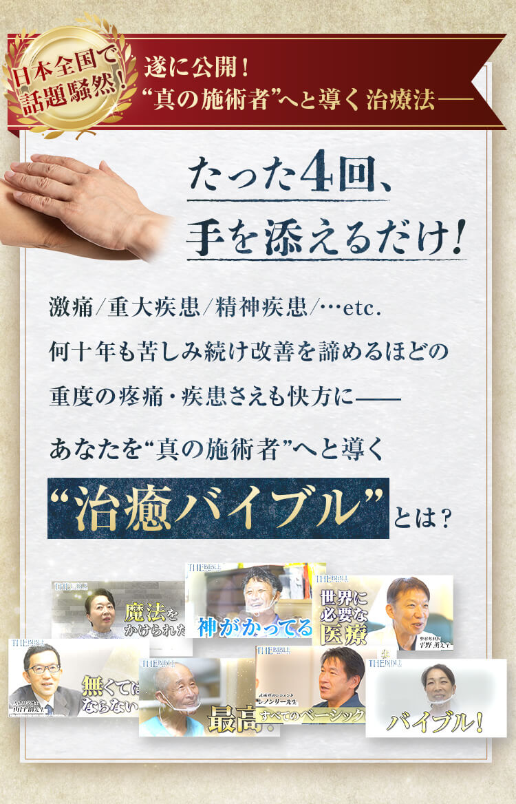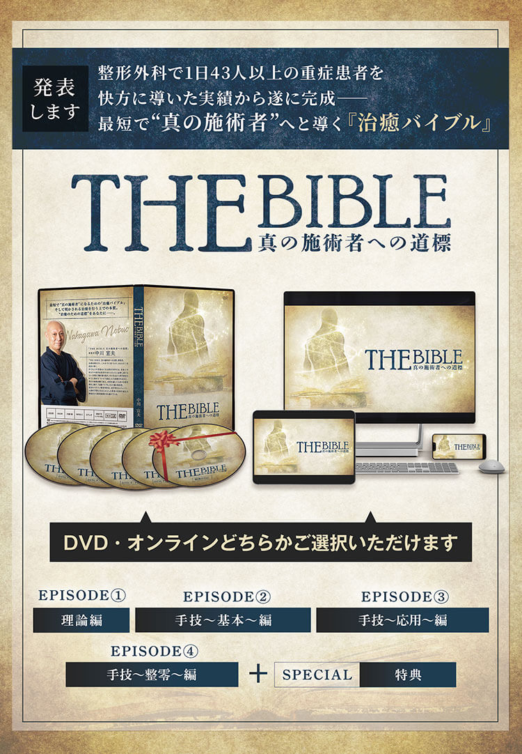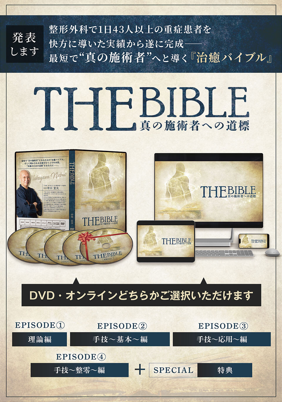 そのため、この治療理論こそが、私が27年間でようやく行き着いた結論であり、“真の施術者”となることができる、まさに『治癒バイブル』なのです。
