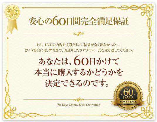 ただ、万が一、再現が難しく感じた、あまり効果を実感できなかったという方のために、【60日間の満足返金保証】も設けておりますのでご安心ください。