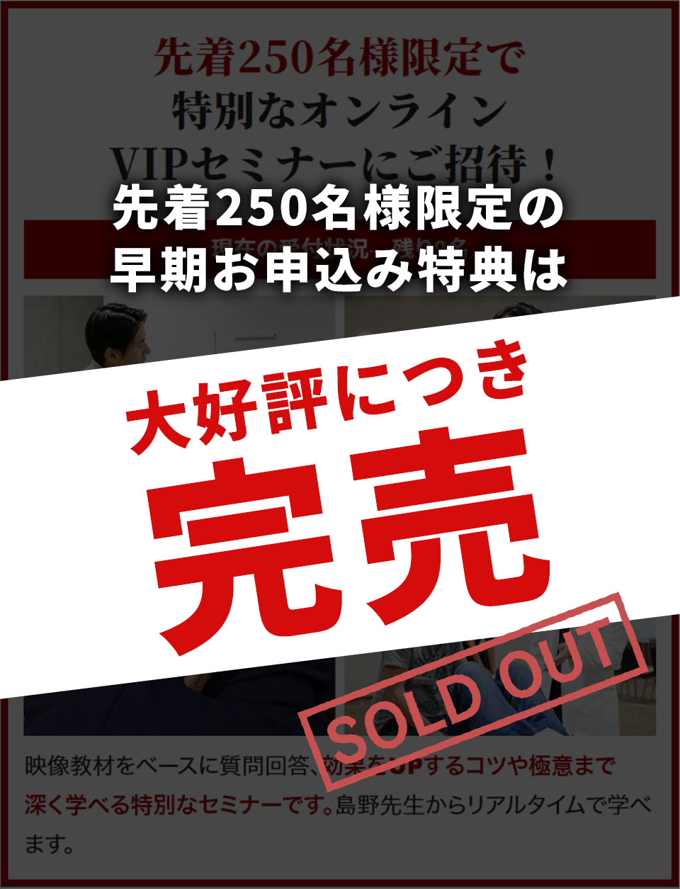 先着250名様限定の早期お申込み特典は大好評につき、