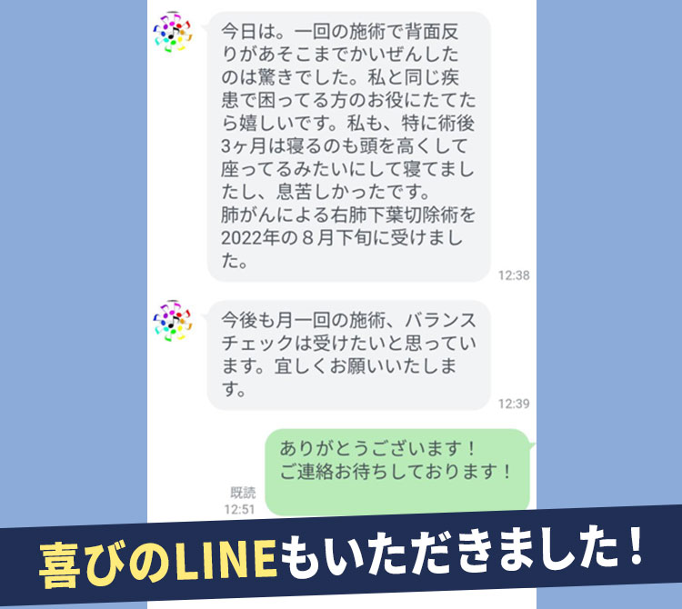 先生の見様見真似で試したところ、「体調が良くなった」「呼吸がしやすくなった」と喜んでくれました。