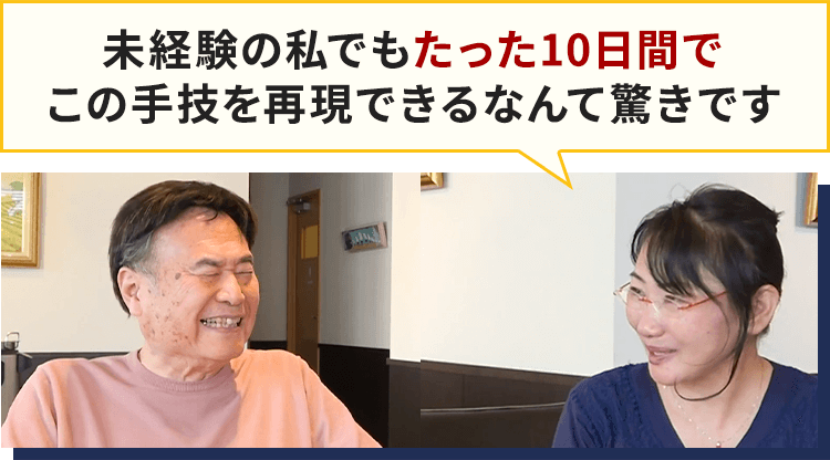 教材のみで再現できるよう、再現性にこだわって制作しておりますが、映像という性質上、お客様の練習量、理解度、相性等により習得度にどうしても差が出てしまいます。