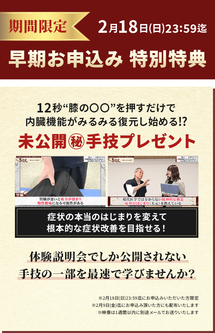 村松先生の直接指導で「手技道®」を学べるのは現状プレミアムアカデミーだけ。それに加えて…本来180万円するセミナーでも公開されなかった内容まで習得できてしまいます。