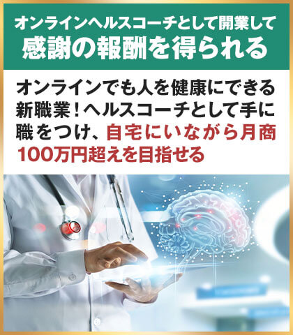 しかも、これからの日本ではこの仕事が熱望されることは間違いありません。高齢化と医療従事者の深刻な不足に加え、コロナウィルスの影響により、治療院やマッサージなどの健康系ビジネスが崩壊の危機を迎えているため、オンラインで心と体の健康を守れるこの職業は、ますます必要とされるようになるでしょう。