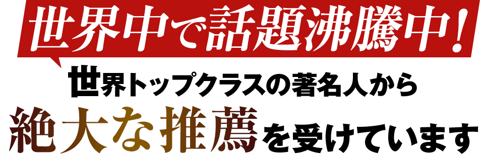 一度知るだけで、その後の人生を永遠に変えてしまうほど強力なこのメソッドは、「人類全体が知るべき」「広めなくてはいけない」と世界トップクラスの著名人たちからも絶大な信頼と推薦を受けています。