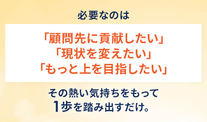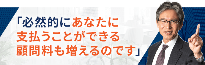 顧問料UPはもちろんですが、今まで以上に感謝の言葉を貰えるやりがいに満ち溢れた毎日が待っているでしょう。