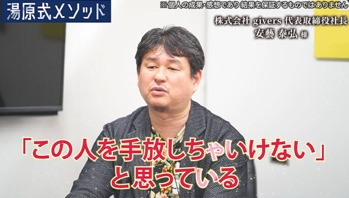 「基本的に経営者は会社を大きくしたいと思っています。例外なく私もです。その時に湯原さんは会社を大きくする、まさに私が望んでいたところに主眼をおいていたんですよね。