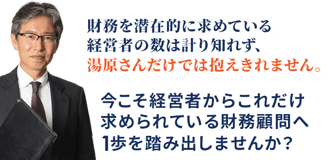 また他にも数名財務セミナーをやっている方がおりますが、税理士から財務顧問に転身した第一人者ともいえるパイオニアは湯原さんです。
