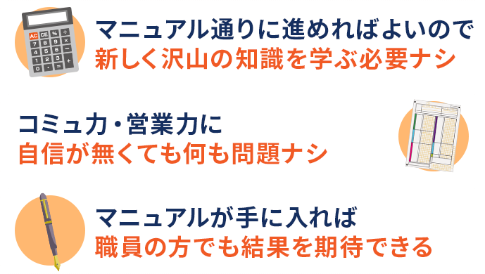 体系化したマニュアルも全て差し上げます。