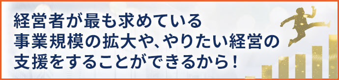財務顧問は経営者が最も望んでいる事業規模の拡大に貢献します。